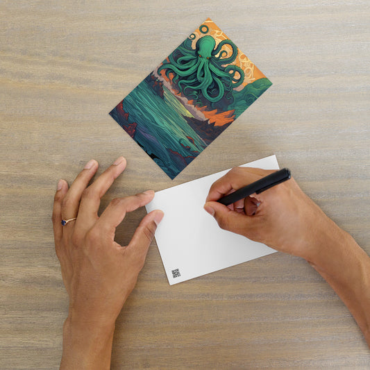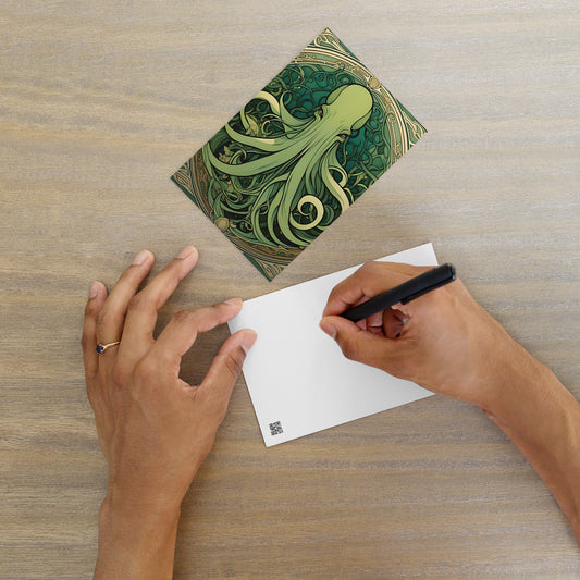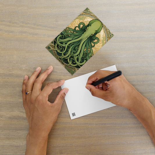 Postkarten sind eine Sammlung, die ferne Echos aus vergessenen Reichen und unvorstellbaren Orten einfängt. Mit Lovecraftscher Ästhetik und kryptischen Designs wirkt jede Karte wie eine Botschaft vom Rand der Realität. Senden Sie eine Nachricht – oder eine Warnung – von jenseits der Sterne.
